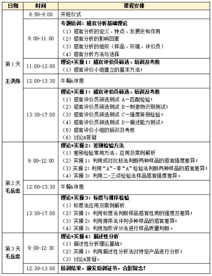 >>【講師介紹】SEPA感官分析常用方法實操培訓班(初級班),報名進行中!