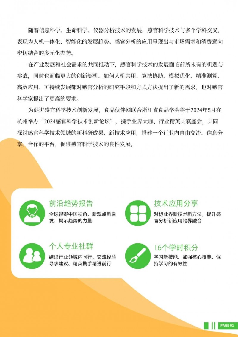 為促進感官科學技術創新發展,食品伙伴網聯合浙江省食品學會將于2024年5月在杭州舉辦“2024感官科學技術創新論壇”,攜手業界大咖、行業精英共襄盛會,共同探討感官科學技術領域的新科研成果、新技術應用,搭建一個行業內自由交流、信息分享、合作的平臺,促進感官科學技術的良性發展。