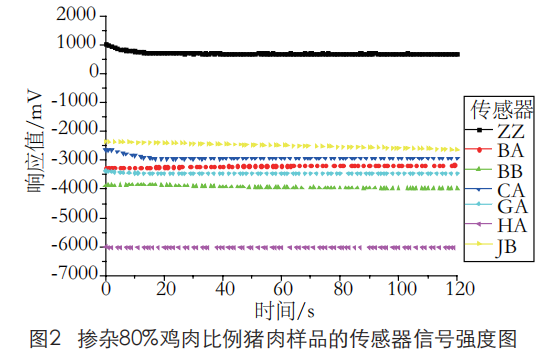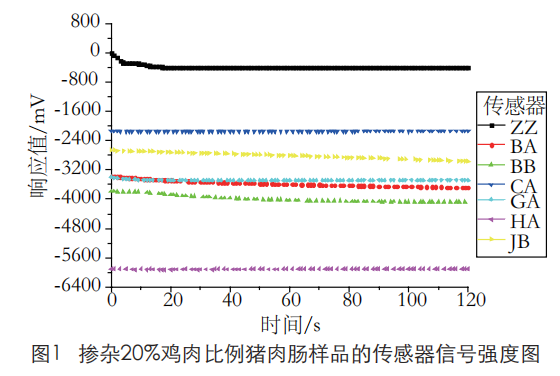 豬肉腸摻雜雞肉樣品的傳感器信號(hào)分析
