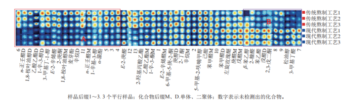 圖5 不同熬制工藝“佛跳墻”GC-IMS揮發(fā)性物質(zhì)指紋圖譜