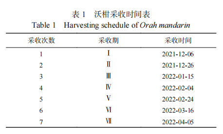 沃柑均采自廣西某沃柑種植基地,每間隔20d采摘一次,采收期與采收時(shí)間見表1。