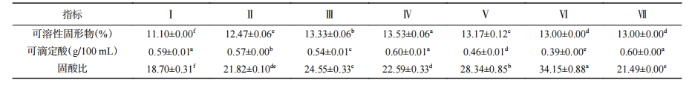 可滴定酸含量變化不穩(wěn)定,在采收期Ⅵ可滴定酸含量最低;