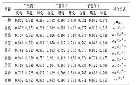 由于情緒分析取值為毫秒之間,因此為了避免分析值缺失而影響分析效果,采用多項(xiàng)式擬合觀察情緒變化趨勢(shì),擬合效果見(jiàn)表2。