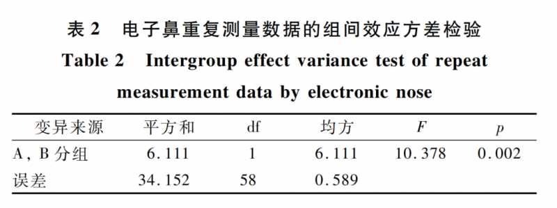 電子鼻檢測數據的主成分分析與重復測量的方差分析
